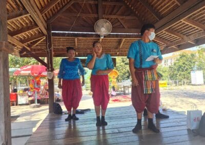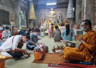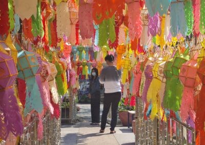 ซึ่งเป็นวัดเก่าแก่คู่บ้านคู่เมืองชาวโคราช และมีเจดีย์บรรจุอัฐิท้าวสุรนารีหรือคุณย่าโม โดยมีนักท่องเที่ยวชาวไทยเชื้อสายจีน ที่ต่างพาครอบครัวมาทำบุญกันอย่างเนื่องแน่น ภายในวัดศาลาลอยมีกิจกรรมให้นักท่องเที่ยวได้ทำบุญหลายจุด เช่น กราบสักการะบูชาพระประธานในอุโบสถ ขอพรท้าวสุรนารีหรือคุณย่าโม ทำบุญปล่อยชีวิตโคกระบือ ปล่อยนก ปล่อยปลา และบนบานด้วยเพลงโคราช เพื่อความเป็นสิริมงคลให้กับครอบครัว เนื่องในโอกาสวันปีใหม่ของชาวจีน ซึ่งบริเวณวัดศาลาลอยนักท่องเที่ยวนิยมสวมใส่ชุดสีแดง ชุดอาตี๋และกี่เพ้า ที่เป็นสัญลักษณ์ของเทศกาลตรุษจีน
