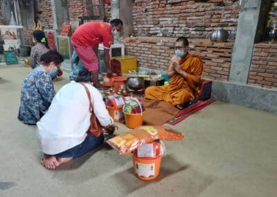 โดยวัดศาลาลอย ยังคงมีมาตรการการป้องกันการแพร่ระบาดของโควิด-19 ตรวจเช็คอุณหภูมิของนักท่องเที่ยวทุกรายที่เข้ามาในวัด ลงชื่อหรือสแกนแอพพลิเคชั่น “ไทยชนะ” และต้องสวมหน้ากากอนามัยตลอดเวลา นอกจากนี้บริเวณหน้าอุโบสถ ยังมีจุดกิจกรรมให้อาหารปลาคราฟ ที่เด็กๆให้ความสนใจกันมากเพราะได้ให้อาหารโดยการใส่ขวดนมเด็กทารก บริเวณน้ำตกจำลองที่เป็นจุดถ่ายรูปไว้ให้นักท่องเที่ยวนั่งพักร้อน ทานกาแฟและถ่ายรูป พักผ่อนหย่อนใจกับครอบครัว และบริเวณการแสดงร้องเพลงโคราชที่ไพเราะเสนาะหู ดึงดูดความสนใจนักท่องเที่ยวที่เข้ามาทำบุญในวัดศาลาลอย.