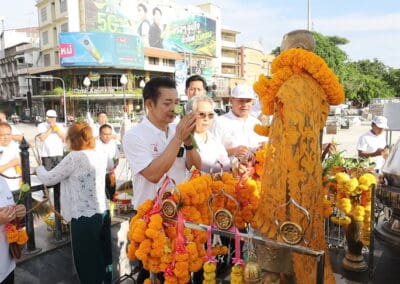 นครราชสีมา-วันนี้(17 เมษายน 2568) ผู้สื่อข่าวรายงานบรรยากาศการหาเสียงเลือกตั้ง นายกเทศมนตรีและสมาชิกสภาเทศบาลนครนครราชสีมา ที่จะมีขึ้นในวันอาทิตย์ที่ 11 พฤษภาคม 2568 ว่า บรรยากาศการลงพื้นที่หาเสียงของผู้สมัครเป็นไปอย่างเข้มข้นหลังประชาชนฉลองเทศกาลสงกรานต์ โดยนายแพทย์วรรณรัตน์ ชาญนุกูล กลุ่มโคราชชาติพัฒนา และอดีต รมว.พลังงาน และ รมว.อุตสาหกรรม ผู้สมัครนายกเบอร์ 2 พร้อม ผู้สมัคร ส.ท. 4 เขต เบอร์ 7-12 ลงพื้นที่กราบสักการะขอพรคุณย่าโม เพื่อความเป็นสิริมงคล และเดินหาเสียงแจกแผ่นพับแนะนำตัวเองแก่พี่น้องประชาชนบริเวณร้านค้าต่างๆ หน้าอนุสาวรีย์ท้าวสุรนารี