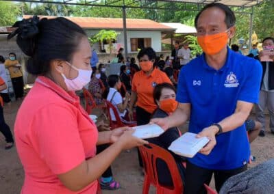 ศูนย์คนโคราชรักจริงไม่ทิ้งกัน วันอังคารที่ 12 พฤษภาคม 2563 นายวัชรพล โตมรศักดิ์ พร้อมด้วยกำนันจุล เข็มทอง ผู้ใหญ่สมนึก แพปรุ ผู้ใหญ่พิมพ์ใจ ฉิมใหม่ ผู้ใหญ่ปรานี จันทร์กลาง รวมทั้ง ผู้ช่วยกำนัน สารวัตรกำนัน ประธานชุมชน แพทย์ตำบล อสม. และ สท. หลายท่าน ได้ไปเดินมอบอาหารกลางวันแบ่งปันน้ำใจ จาก “ศูนย์ฅนโคราชรักจริงไม่ทิ้งกัน ร่วมฝ่าวิกฤตโควิด-19” ที่บ้านโกรกเดือนห้า ตำบลสุรนารี เพื่อช่วยลดภาระค่าอาหารและบรรเทาความเดือดร้อนจากมาตรการเฝ้าระวังป้องกันโรคระบาดโควิด-19 ด้วยความห่วงใยพี่น้องชาวโคราชทุกท่าน