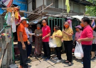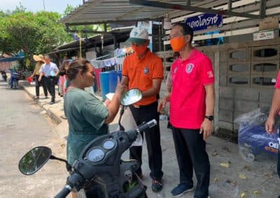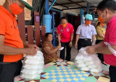 เดินหน้ามอบอาหารปรุงสดๆ ใหม่ๆ โดยพ่อครัวแม่ครัวทีม “ครัวหลวงพ่อ” จากวัดบ้านไร่ (หลวงพ่อคูณ) อำเภอด่านขุนทด และคณะแม่ครัวจิตอาสา พร้อมทั้งมอบสเปรย์แอลกอฮอลล์ และหน้ากากผ้าสีส้มจาก “ศูนย์ฅนโคราชรักจริงไม่ทิ้งกัน ร่วมฝ่าวิกฤตโควิด-19” นำโดย นายวัชรพล โตมรศักดิ์ นำไปให้กับพ่อแม่พี่น้องในพื้นที่ วัดยางน้อย ตำบลบ้านใหม่ , ตำบลหัวทะเล , เพื่อช่วยลดภาระค่าอาหารและบรรเทาความเดือดร้อนจากมาตรการเฝ้าระวังป้องกันโรคระบาด รวมทั้งเป็นกำลังใจให้ทุกท่านผ่านพ้นวิกฤตโควิด-19 ในช่วงนี้