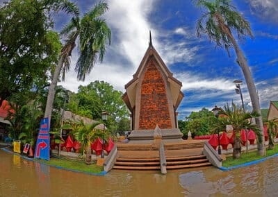 ส่วนโบสถ์หลังเก่าใช้หินทรายแดงอายุหลายร้อยปีมวลน้ำได้ท่วมล้อมรอบทั้งหมด แต่น้ำไม่เข้าถึงภายในอุโบสถฯ เนื่องจากได้ทำบันไดกั้นไว้ ส่วนจุดจำหน่ายดอกไม้ธูปเทียน เวทีหมอเพลงโคราช บ่อปลา รวมทั้งต้นโพธิ์อายุกว่า 100 ปี น้ำท่วมโคลนต้น โดยกระแสน้ำได้เข้าท่วมเมื่อค่ำคืนวันที่ 20 ตุลาคมที่ผ่านมา โดยกระแสน้ำไหลมาแรงมาก ส่งผลให้น้ำท่วมทั้งวัด