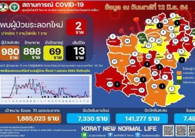 โคราชติดเชื้อโควิด-19 ลดลงเหลือ 2 ราย รวมยอดสะสม 980 ราย รักษาหายแล้ว 898 ราย