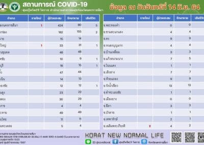 วันนี้(14 มิ.ย.64) พบผู้ติดเชื้อรายใหม่ 2 ราย ใน อ.เมือง 1 ราย (ต.บ้านโพธิ์) และ อ.บัวใหญ่ (ต.เสมาใหญ่)