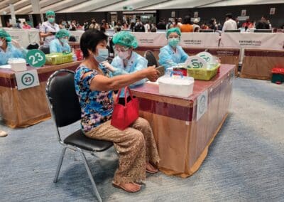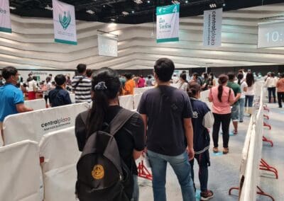 ขณะเดียวกันนายแพทย์เจษฎ์ บุญยวงศ์วิโรจน์ ผู้ช่วยผู้อำนวยการโรงพยาบาลมหาราชนครราชสีมา เปิดเผยว่า วันนี้ (14 มิ.ย.64) ทางโรงพยาบาลมหาราชนครราชสีมา จะมีการประกาศรายชื่อผู้ที่จะได้รับการฉีดวัคซีนแอสตร้าเซเนก้า ล็อตที่ 2 สำหรับคนที่ลงทะเบียนผ่านระบบโคราชพร้อม หมอพร้อม และมหาราชพร้อม ซึ่งเบื้องต้นจะประกาศรายชื่อให้ทราบ จำนวน 1,500 คน เนื่องจากขณะนี้ได้รับการแจ้งตัวเลขของวัคซีนที่จะได้รับการจัดสรรมาแล้ว จำนวน 1,500 โด๊ส ซึ่งจะฉีดให้กับประชาชนในช่วงระหว่างวันที่ 20-27 มิ.ย. 64 นี้ ขณะเดียวกันหากมีวัคซีนเพิ่มเข้ามาก็จะประกาศรายชื่อเพิ่มเติมอีกครั้ง โดยประชาชนที่ลงทะเบียนจองฉีดวัคซีนเอสตร้าเซเนก้า สามารถนำเลข 13 หลัก ในบัตรประจำตัวประชาชน ไปตรวจสอบได้ในแอพลิเคชั่น “โคราชพร้อม” เพื่อที่จะได้ทราบว่าตัวเองได้รับคิวฉีดหรือไม่ หากยังไม่ได้รับคิวฉีดจะได้ไม่ต้องเดินทางมาให้เสียเวลา ซึ่งทางโรงพยาบาลมหาราชจะประกาศรายชื่อเพิ่มเติมเมื่อได้รับการจัดสรรวัคซีนเข้ามาเพิ่มอีก.