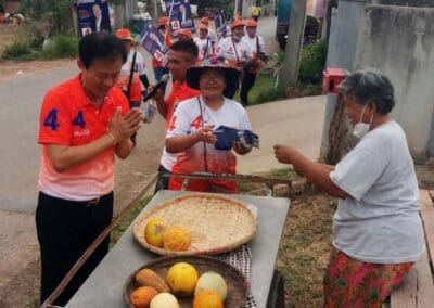 สมบัติ กาญจนวัฒนา ชาติพัฒนากล้า เขต 4 เบอร์ 4 เดินรณรงค์แจกบัตรเบอร์ และโบชัวร์นโยบายพรรคฯ ในพื้นที่ตำบลนากลาง อ.สูงเนิน