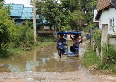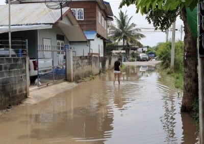 ผู้สื่อข่าวจึงลงพื้นที่ตรวจสอบ พบกับนางยุพิน ใจซื่อ ตัวแทนชาวบ้านที่ได้รับความเดือดร้อน เปิดเผยว่า ถนนเตยกระโตน 2 เป็นทางเข้าออกที่ชาวบ้านมากกว่า 5 หมู่บ้านใช้เป็นเส้นทางหลักเดินทางสัญจร แต่ที่ผ่านมา เมื่อฝนตกลงมาทุกครั้ง น้ำจะท่วมขังบริเวณนี้ เนื่องจากปัญหาท่อระบายน้ำอุดตัน และรางระบายน้ำอยู่ต่ำกว่าระดับถนน ทำให้น้ำไม่สามารถระบายออกไปได้ เป็นปัญหาคาราคาซังมากกว่า 10 ปี จนผิวถนนแช่น้ำชำรุดเสียหายเป็นหลุมเป็นบ่อ ทำให้เกิดอุบัติเหตุมาแล้วหลายรายโดยเฉพาะรถจักรยานยนต์ล้มแช่น้ำมาแล้วหลายคัน จึงอยากให้หน่วยงานที่รับผิดชอบลงมาแก้ไขช่วยเหลือชาวบ้านด่วน