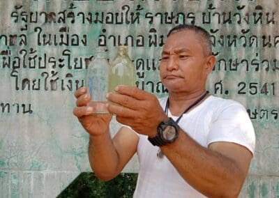 นายไพรชน เหล็กกรุง อายุ 54 ปี ชาวบ้านวังหิน ตำบลในเมือง อำเภอพิมาย บอกว่า น้ำเสียมีการปล่อยมานานแล้ว ถูกปล่อยลงคลองธรรมชาติก่อนไหลสู่ลำน้ำจักราชและลำน้ำมูล ซึ่งชาวบ้านอยากให้หน่วยงานที่เกี่ยวข้องเข้ามาแก้ไข เพราะชาวบ้านจะต้องใช้น้ำเพื่อการอุปโภค-บริโภคและใช้ในภาคการเกษตรโดยเฉพาะการผลิตน้ำประปาหมู่บ้าน ชาวบ้านจะใช้น้ำจากลำน้ำจักราชซึ่งอยู่ติดกับโรงงานดังกล่าว ขึ้นมาผลิตน้ำประปา แต่เมื่อมีการปล่อยน้ำเสียลงสู่ลำน้ำ ทำให้ชาวบ้านกว่า 300 หลังคาเรือนได้รับผลกระทบ ประกอบกับช่วงนี้เป็นช่วงฤดูแล้ง ปริมาณน้ำในลำน้ำจักราชเริ่มแห้งลงอย่างรวดเร็ว น้ำเริ่มมีสีเขียว มีตะกอน จึงอยากวอนให้หน่วยงานที่เกี่ยวข้องลงมาแก้ไขปัญหาดังกล่าวให้กับชาวบ้านด้วยเพราะในช่วงปี 2560 ที่ผ่านมา ชาวบ้านได้ร้องเรียนผ่านศูนย์ดำรงธรรมอำเภอพิมายไปแล้วครั้งหนึ่ง แต่ยังไม่ได้รับการแก้ไข จนปัจจุบันชาวบ้านกว่า 300 หลังคาเรือนยังคงได้รับความเดือดร้อนอยู่