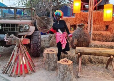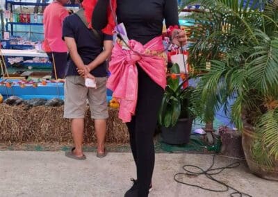 นครราชสีมา – วันที่ 9 มีนาคม 2564 ที่วัดหลุมข้าว ตำบลหลุมข้าว อำเภอโนนสูง จังหวัดนครราชสีมา นางรำไพ แชมเบอร์เลน อายุ 48 ปี หรือ เจ๊ไพ ชาวอำเภอโนนสูง กำลังโชว์ลีการการเป็นโฆษกงานบุญวัดหลุมข้าว โดยมีชาวบ้านที่มาร่วมบุญ ต่างแห่ถ่ายรูปของ เจ๊ไพ กันเป็นจำนวนมากเนื่องจาก เจ๊ไพ ได้สร้างสีสัน เรียกเสียงฮือฮา สร้างบรรยากาศความคึกคักให้กับงานวัดอีกด้วย เพราะงานนี้ เจ๊ไพ ขอทุ่มสุดตัว แปลงโฉมเป็นเงาะป่า ทาหน้าตาดำ ทาปากสีแดง สวมวิกผมสีรุ้ง คล้ายกับเงาะป่า ตัวละครดังในอดีต