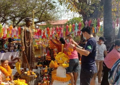 นครราชสีมา – วันที่ 27 กุมภาพันธ์ 2564 ผู้สื่อข่าวรายงานว่า ประชาชนและนักท่องเที่ยว ต่างพาครอบครัวเดินทางท่องเที่ยวทำบุญ ไปทำบุญตามวัดต่างๆ ทั้ง 32 อำเภอของ จังหวัดนครราชสีมา เนื่องในวันหยุดยาว วันมาฆบูชา ส่งผลให้วัดหลายแห่งบรรยากาศเป็นไปด้วยความคึกคัก โดยเฉพาะที่วัดศาลาลอย อำเภอเมือง จังหวัดนครราชสีมา ซึ่งเป็นสถานที่เก็บอัฐิของท้าวสุรนารี (ย่าโม) สถานที่ศักดิ์สิทธิ์ที่ชาวโคราชเคารพบูชา มีพุทธศาสนิกชนจำนวนมากพร้อมใจกันแต่งชุดขาวเดินทางทำบุญตักบาตร ถวายสังฆทานแด่พระสงฆ์ พร้อมปล่อยนกปล่อยปลา และฟังพระธรรมเทศนา ซึ่งปีนี้พบว่ามีเด็กเยาวชน วัยรุ่นหนุ่มสาวออกมาทำบุญกันมากขึ้น ในฐานะพุทธศาสนิกชนได้ยึดหลักธรรมคำสอนที่พระพุทธเจ้าทรงแสดงโอวาทปาติโมกข์ ในวันมาฆบูชา คือ การทำความดี ละเว้นความชั่ว และทำจิตใจให้ผ่องใส