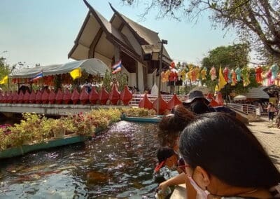 หยุดยาววันมาฆบูชา นักท่องเที่ยวพาครอบครัวเข้าวัดทำบุญที่วัดศาลาลอยโคราชคึกคัก