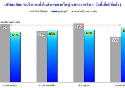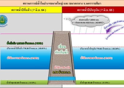 ขณะเดียวกันภาพรวมของอ่างเก็บน้ำขนาดใหญ่ ทั้ง 4 แห่ง ในพื้นที่ จ.นครราชสีมา ประกอบไปด้วย อ่างเก็บน้ำลำตะคอง อ.สีคิ้ว, อ่างเก็บน้ำมูลบน อ.ครบุรี, อางเก็บน้ำลำแชะ อ.ครบุรี และอ่างเก็บน้ำลำพระเพลิง อ.ปักธงชัย วันนี้มีปริมาณน้ำกักเก็บรวมกันทั้งหมด 559 ล้านลูกบาศก์เมตร คิดเป็นร้อยละ 63.20 ของความจุกักเก็บทั้งหมด 885 ล้านลูกบาศก์เมตร ซึ่งขณะนี้สามารถรับน้ำได้เพิ่มอีกปริมาณมาก.