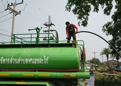 ด้านนายกรีธา พันธุ์ฤกษ์ ผู้จัดการการประปาส่วนภูมิภาค สาขาปักธงชัย กล่าวว่า ในช่วงภัยแล้งปีนี้ ขอยืนยันว่า ทุกพื้นที่ในเขตบริการของการประปาส่วนภูมิภาคสาขาปักธงชัย จะมีน้ำประปาใช้อย่างเพียงพอ เนื่องจากเขื่อนลำพระเพลิง ซึ่งเป็นแหล่งน้ำดิบสำคัญ มีปริมาณกักเก็บมากกว่าปีที่ผ่านมา โดยมีปริมาณน้ำกักเก็บปัจจุบัน อยู่ที่ 117 ล้านลูกบาศก์เมตร หรือ 77.53% และเป็นน้ำใช้การได้ 116 ล้านลูกบาศก์เมตร หรือ 75.42 % สามารถบริหารจัดการน้ำตามแผนได้ 2-3 ปี จึงไม่ต้องกังวลว่าจะขาดแคลนน้ำ และยังมีน้ำดื่มคุณภาพสนับสนุนให้ชาวบ้านที่เดือดร้อนด้วย แม้ว่าจะอยู่นอกพื้นที่บริการ อย่างเช่นครั้งนี้ ทาง อบต.หนองตะไก้ อ.สูงเนิน ได้ประสานขอรับการสนับสนุนน้ำดื่มเข้ามา ทางประปาส่วนภูมิภาคสาขาปักธงชัย จึงจัดสรรน้ำดื่มสะอาดให้วันละ 24,000 ลิตร เพื่อไปแจกจ่ายช่วยชาวบ้านที่เดือดร้อนขาดแคลนน้ำบริโภค