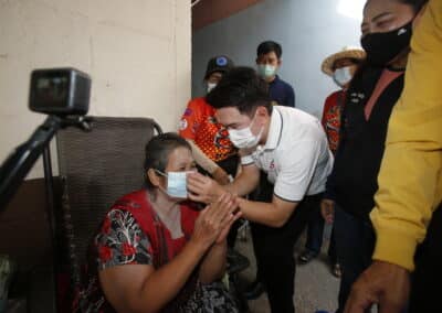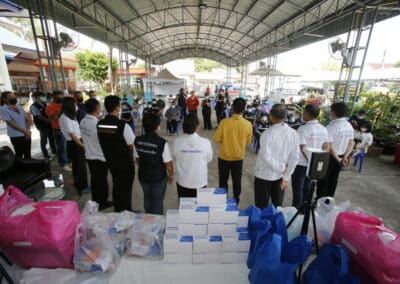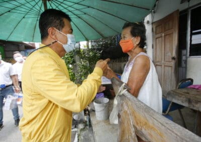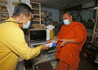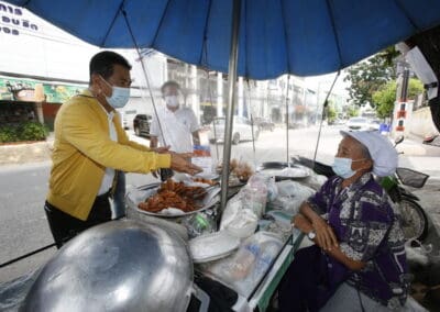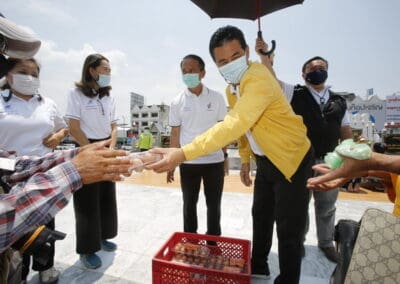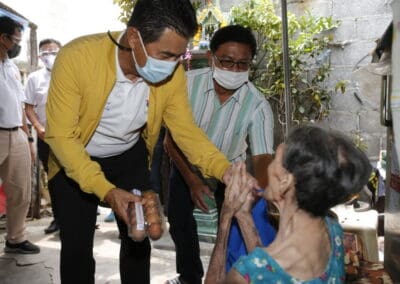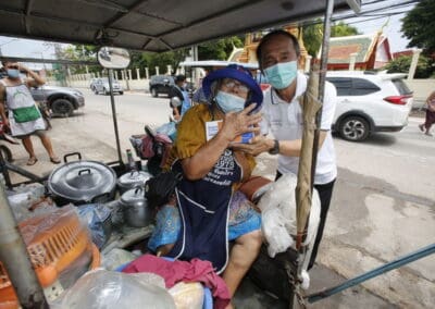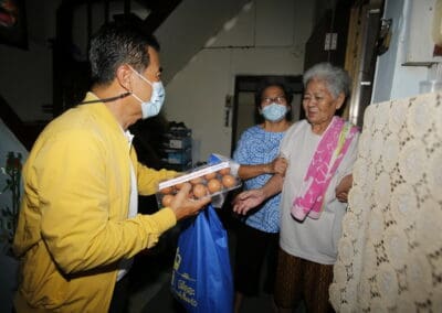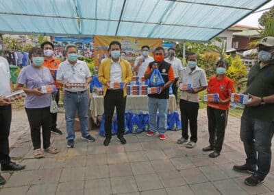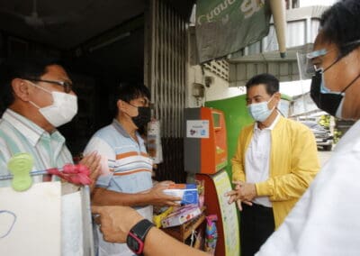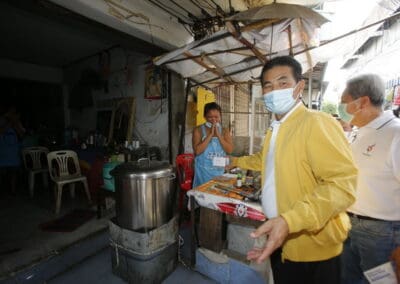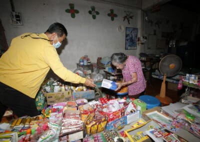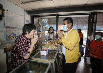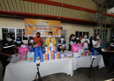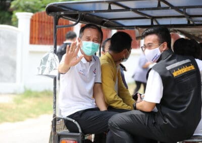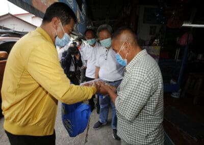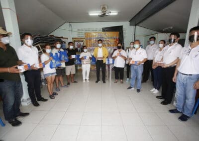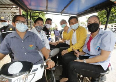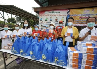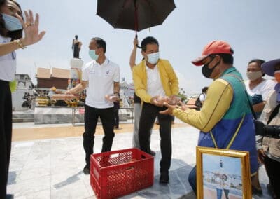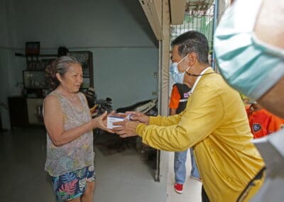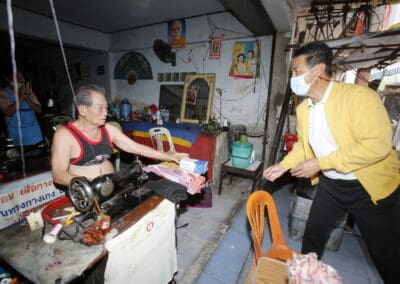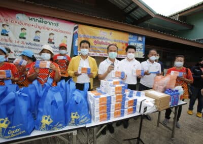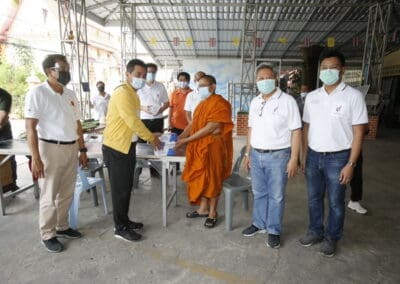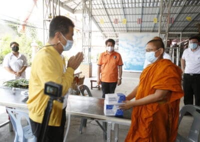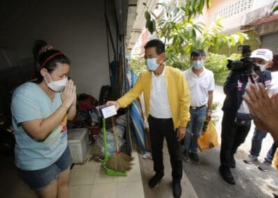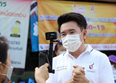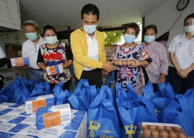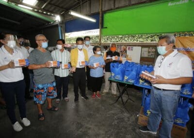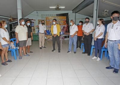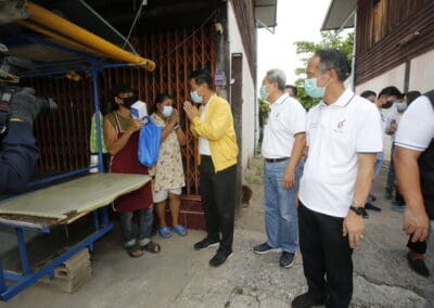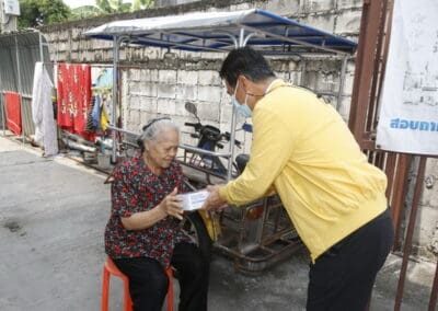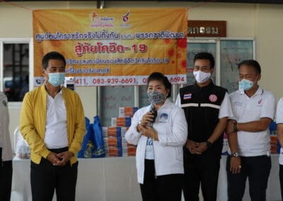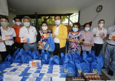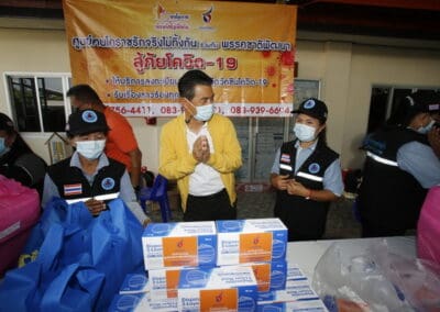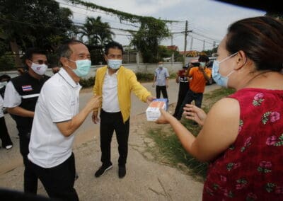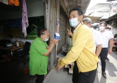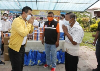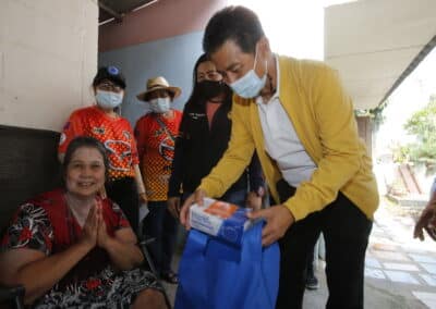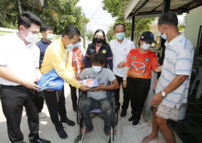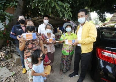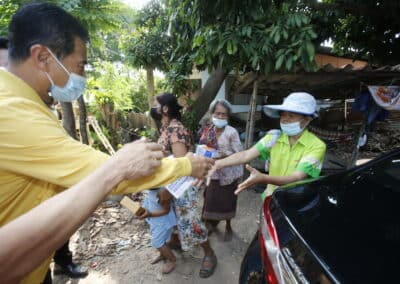 จากนั้นช่วยบ่าย นายเทวัญ ได้นำทัพทีมสท.โคราช ลงพื้นที่พบปะเยี่ยมให้กำลังใจผู้นำชุมชน,ผู้นำกลุ่ม,ผู้นำอสม.มอบถุงน้ำใจ หน้ากากอนามัย และไข่ไก่ให้กับกลุ่มเสี่ยง ผู้ติดเตียง ผู้สูงอายุที่ด้อยโอกาส ผู้พิการ (จำนวน 31ชุด) ที่ชุมชนวัดหนองบัวรอง ต.ในเมือง อ.เมือง จ.นครราชสีมา และชุมชนตรอกตีเหล็ก จำนวน 21 ชุด ชุมชนสุรวิชัย จำนวน 20 ชุด ชุมชนเสาธง-สมอราย จำนวน 42 ชุด และชุมชนวัดม่วง-วัดสะแก จำนวน 10 ชุด