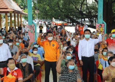 นายเทวัญ ลิปตพัลลภ หัวหน้าพรรคชาติพัฒนา อดีตรมต.ประจำสำนักนายกรัฐมนตรี นายประเสริฐ บุญชัยสุข นายกเทศมนตรีนครนครราชสีมา นาย วุฒิศักดิ์ ภาวะศิลป์ รองนายกเทศมนตรีฯ นายไพบูลย์ พฤกษ์พนาเวศ ที่ปรึกษานายกเทศมนตรีฯส.จ.องอาจ พฤกษ์พนาเวศ และคณะผู้บริหาร สมาชิกสภาเทศบาลนครนครราชสีมา (ส.ท.) ลงพื้นที่มอบถุงกู้ภัยสู้โควิด พร้อมข้าวสารอาหารแห้ง ให้กับพี่น้องในชุมชนเขตเทศบาลฯ พร้อมมอบชุดกันเปื้อนให้พ่อค้า แม่ค้าในตลาดเขตเทศบาลฯ