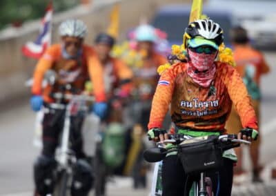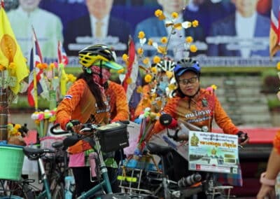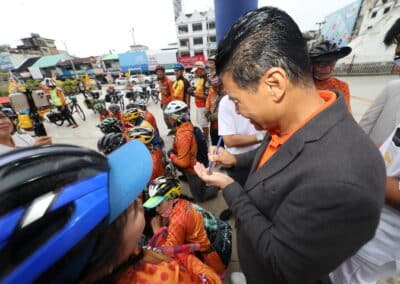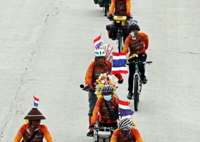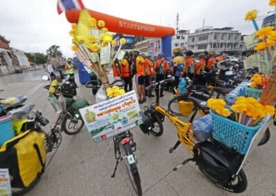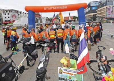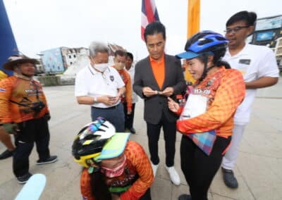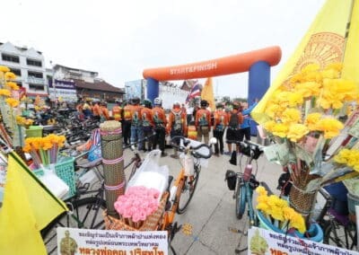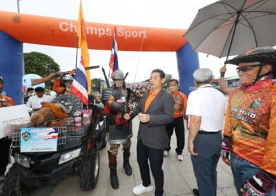 “ในโอกาสนี้ ผมขออํานวยพร ขอให้สิ่งศักดิ์สิทธิ์ทั้งหลายดลบันดาลให้นักปั่นทุกท่านมีสุขภาพแข็งแรง ขอให้ปลอดภัยทุกเส้นทาง แล้วก็ขอให้ทุกสิ่งทุกอย่างลุล่วงตามวัตถุประสงค์ของคณะกรรมการจัดงานครั้งนี้ รวมทั้งผู้ที่มีจิตศรัทธาเป็นผู้ใจบุญที่จะร่วมงานในวันนี้ก็ขอให้ทุกท่านประสบความสําเร็จ” นายเทวัญ กล่าว