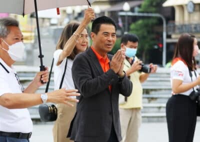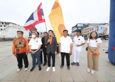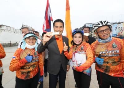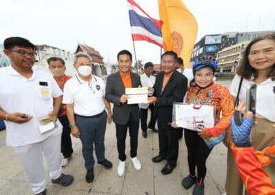 วันที่ 9 กันยายน 2565 เวลา 07.00 น.นายเทวัญ ลิปตพัลลภ หัวหน้าพรรคชาติพัฒนา อดีตรัฐมนตรีประจำสำนักนายกรัฐมนตรี พร้อมด้วยนายประเสริฐ บุญชัยสุข นายกเทศมนตรีนครนครราชสีมา เป็นประธานพิธีปล่อยขบวนนักปั่นจักรยานปั่นสมทบทุนผ้าป่าสามัคคีแท่งทองมหากุศล สร้างหลวงพ่อคูณ ปริสุทโธ องค์ใหญ่วัดบ้านไร่ ณ ลานอนุสาวรีย์ท้าวสุรนารี (ย่าโม) โดยมี นายสนอง หวังหยิบกลาง ประธานกรรมการบริหาร โครงการวัดบ้านไร่สร้างหลวงพ่อคูณ ปริสุทฺโธ องค์ใหญ่ พร้อมคณะกรรมการฯ ร่วมปล่อยขบวนจักรยานปั่นปันบุญฯ