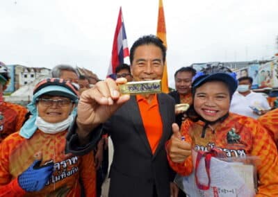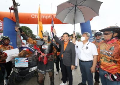“เทวัญ” ชูดาบ ปล่อยขบวนปั่นปันบุญ สร้างหลวงพ่อคูณองค์ใหญ่ วัดบ้านไร่