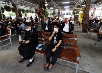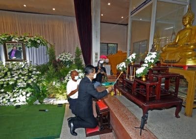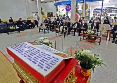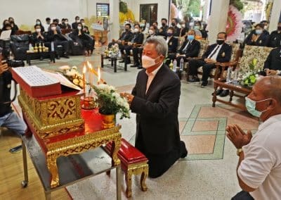 นายเทวัญ ลิปตพัลลภ อดีตรัฐมนตรีประจำสำนักนายกรัฐมนตรี หัวหน้าพรรคชาติพัฒนา นายประเสริฐ บุญชัยสุข นายกเทศมนตรีนคร นครราชสีมา นายอุทัย มิ่งขวัญ ประธานสภาเทศบาลนคร นครราชสีมา พร้อมทีมส.จ.,ส.ท.พรรคชาติพัฒนา เดินทางมาร่วมไว้อาลัย และเป็นเจ้าภาพสวดพระอภิธรรม