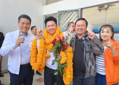 เริ่มต้นวันนี้ด้วยการสักการะ ท่านชาติชาย ชุณหะวัน และกราบขอพรคุณย่าโม ก่อนนำทีมลงสมัครครบทั้ง 8 เขตใน อ.เมืองนครราชสีมา ณ อาคารชาติชายฮอลล์ สนามกีฬา 80 พรรษา