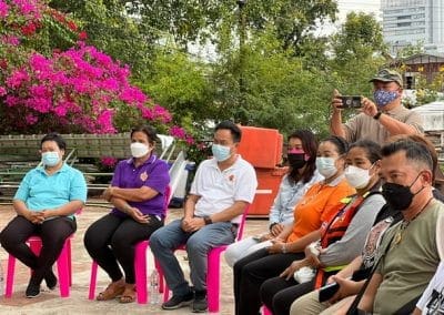 ส่วนปัญหาเรื่องคนเร่รอนนั้น นายกฯ ประเสริฐ ย้ำว่า ทางเทศบาลฯ พยายามที่จะให้พวกเค้าดูแลเรื่องความสะอาด และทางเทศบาลฯ จะทำให้เป็นสวนสาธารณใหม่ และเรื่องท่ออุดตัน เช่น ถนนซอย 1 ที่ว่าอุดตัน ก็จะเข้าไปดูว่าจะเสริมยกระดับ ได้ไหม และเรื่องป้ายทุกชุมชน ต้องมีป้ายชุมชน ทุกชุมชน