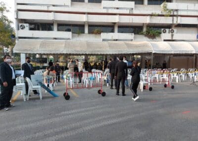 นครราชสีมา – วันนี้ (8 กุมภาพันธ์ 2564) เวลา 08.00 น. ผู้สื่อข่าวรายงานว่า บรรยากาศการรับสมัครเลือกตั้ง อปท.ในพื้นที่ จ.นครราชสีมา วันแรกเป็นไปอย่างคึกคัก โดยเฉพาะที่อาคารกาญจนาภิเษก เทศบาลนครนครราชสีมา ซึ่งคณะกรรมการการเลือกตั้งประจำเทศบาลนครนครราชสีมา ได้มีการจัดรับสมัครเลือกตั้งนายกเทศมนตรี และสมาชิกสภาเทศบาลนครนครราชสีมา ระหว่างวันที่ 8 – 12 กุมภาพันธ์ 2564 ซึ่งวันนี้เป็นวันแรกของการเปิดรับสมัคร บรรยากาศมีความคึกคักเป็นอย่างมาก โดยมีกองเชียร์ของผู้สมัครแต่ละคน สวมเสื้อทีมมาถือป้ายส่งเสียงเชียร์กันอย่างครึกครื้น