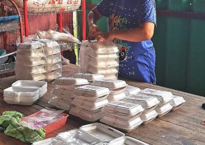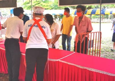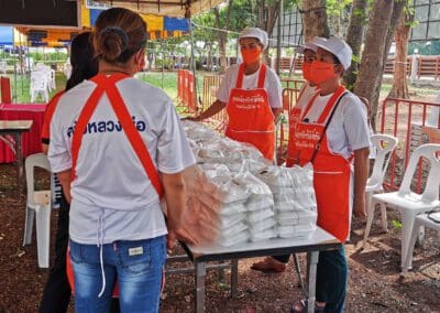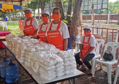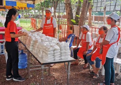 ครัวหลวงพ่อ ร่วมส่งมอบกำลังใจ ร่วมกับ ศูนย์คนโคราชรักจริงไม่ทิ้งกัน ส่งมอบกำลังใจให้คนโคราช และย้ำว่า จะไม่ยอมให้คนโคราชอดตาย ด้วยคณะกรรมการวัดบ้านไร่ ลูกหลานหลวงพ่อคูณ จัดหาอาหารคุณภาพ วัตถุดิบใหม่สด สะอาด ปรุงร้อนๆ ทุกวัน มาเติมเต็ม ให้กับ การทำโรงทาน โรงอาหาร แจกให้กับคนโคราช วันละ 1000 กล่อง สำหรับเป็นอาหารกลางวัน ซึ่งสามารถมารับ หรือ รอ ณ.จุดนัดส่งอาหารให้กับชุมชน ต่าง ๆในโคราช สลับหมุนเวียนกัน