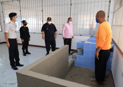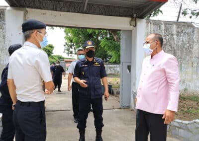 นครราชสีมา – วันนี้ (15 มิถุนายน 2564) ที่เรือนจำกลางคลองไผ่ อำเภอสีคิ้ว จังหวัดนครราชสีมา นายกอบชัย บุญอรณะ ผู้ว่าราชการจังหวัดนครราชสีมา พร้อมด้วยนายเผด็จ หริ่งรอด ผู้บัญชาการเรือนจำกลางคลองไผ่ นายศร ธิติธรรมพฤกษ์ ผู้บัญชาการเรือนจำอำเภอสีคิ้ว นายไพรัชตน์ ขมินทกูล ผู้อำนวยการทัณฑสถานเกษตรอุตสาหกรรมเขาพริก อ.สีคิ้ว และนางพรทิพย์ รัตนชัยฤทธิ์ ผู้อำนวยการทัณฑสถานหญิงนครราชสีมา ร่วมตรวจเยี่ยมการดำเนินปรับปรุงก่อสร้างเรือนจำชั่วคราวคลองไผ่ เป็นศูนย์ควบคุมผู้ต้องหาระหว่างรอการพิจารณาคดี เพื่อคัดกรองผู้ต้องขังรายใหม่ที่อยู่ระหว่างรอพิจารณาคดีก่อนเข้าสู่เรือนจำ ป้องกันการแพร่ระบาดของเชื้อไวรัสโควิด-19จากภายนอกสู่ภายในเรือนจำ