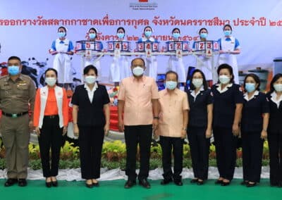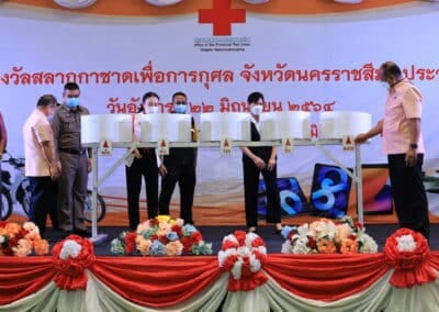 นครราชสีมา – (23 มิถุนายน 2564) ที่ศูนย์การค้าเทอร์มินอล 21 โคราช จ.นครราชสีมา นายกอบชัย บุญอรณะ ผู้ว่าราชการจังหวัดนครราชสีมา เป็นประธานในพิธีการออกสลากกาชาดเพื่อการกุศล ประจำปี 2564 โดยมีนางสายชล บุญอรณะ นายกเหล่ากาชาดจังหวัดนครราชสีมา และรองผู้ว่าราชการจังหวัดนครราชสีมา ปลัดจังหวัดนครราชสีมา นางยลดา หวังศุภกิจโกศลนายก อบจ.นครราชสีมา หัวหน้าส่วนราชการจังหวัดนครราชสีมา ที่ปรึกษาและคณะกรรมการเหล่ากาชาดจังหวัดนครราชสีมา ร่วมเป็นสักขีพยานในการออกรางวัลสลากกาชาดเพื่อการกุศลในครั้งนี้ ภายใต้มาตรการป้องกันการแพร่ระบาดของไวรัสโควิด-19 ทั้งนี้เหล่ากาชาดจังหวัดนครราชสีมา ได้กำหนดจัดกิจกรรมการออกรางวัลสลากกาชาดเพื่อการกุศล เพื่อจัดหานำไปให้ความช่วยเหลือ ผู้ประสบความทุกข์ยากเดือดร้อน ผู้ประสบสาธารณภัย ตลอดจนผู้ด้อยโอกาส ผู้เจ็บป่วย ผู้พิการ ตลอดจนกิจกรรมสาธารณกุศลอื่น ตามภารกิจของเหล่ากาชาดจังหวัดนครราชสีมาสำหรับการออกสลากบำรุงกาชาดในครั้งนี้เหล่ากาชาดจังหวัดนครราชสีมาได้จัดพิมพ์ สลากทั้งสิ้น จำนวน 59,999 ฉบับ จำหน่ายราคาฉบับละ 100 บาท โดยผลการออกรางวัลมี ดังนี้