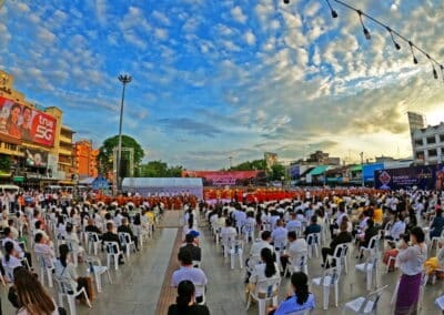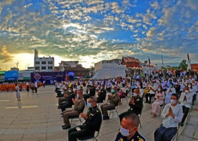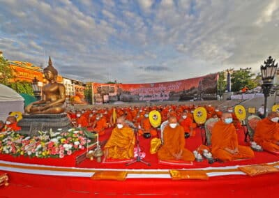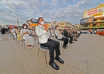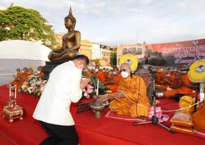 ซึ่งในปีนี้ สถานการณ์ของเชื้อไวรัสโควิด-19 ยังแพร่ระบาด จึงกำหนดจัดเพียงพิธีทำบุญตักบาตรข้าวสารอาหารแห้งในช่วงเช้า และในช่วงเย็น จะมีพิธีรำบวงสรวงของสตรีชาวโคราช จำนวน 4,803 คน โดยแบ่งทยอยรำบวงสรวง จำนวน 5 วัน วันละ 960 คน ตามมาตรการป้องกันการแพร่ระบาดของเชื้อไวรัสโควิด-19 ซึ่งผู้ที่เข้าร่วมรำบวงสรวงฯ จะต้องมีผลการตรวจหาเชื้อโควิด-19 (ATK) อย่างน้อย 24 ชั่งโมงก่อนร่วมพิธีรำบวงสรวงท้าวสุรนารี ซึ่งจัดขึ้นเป็นประจำทุกปี เพื่อเชิดชูเกียรติวีรกรรมของท้าวสุรนารี และวีรชนชาวโคราช เพื่อให้เยาวชนคนรุ่นหลังได้ตระหนักถึงวีรกรรมอันกล้าหาญ เสียสละ และดำรงไว้ซึ่งความสามัคคีของคนในชาติ ทั้งละยังเป็นการส่งเสริมอนุรักษ์ประเพณีท้องถิ่นที่ดีงาม ซึ่งเป็นทั้งเอกลักษณ์ที่ดีของชาวโคราช เป็นงานเทศกาลท่องเที่ยว และแสดงออกถึงอัตลักษณ์-ศักยภาพจังหวัดนครราชสีมา ที่มีความเจริญรุ่งเรืองมาอย่างยาวนาน.