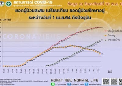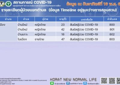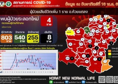 นครราชสีมา- สถานการณ์การแพร่ระบาดของโรคติดเชื้อไวรัสโควิด19 ในพื้นที่จังหวัดนครราชสีมา ล่าสุด วันนี้ (16 พฤษภาคม 2564) พบว่า ผู้ติดเชื้อโควิด19 รายใหม่ มีจำนวน 4 ราย ยังคงเป็นเลขตัวเดียว โดยทั้ง 4 ราย ติดเชื้อจากการสัมผัสผู้ป่วยโควิด 19 ตรวจพบที่ ต.บ้านใหม่ ต.บ้านเกาะ และ ต.ในเมือง อ.เมืองนครราชสีมา ทำให้ยอดรวมผู้ป่วยสะสมเป็น 803 ราย ซึ่งเป็นการพบผู้ป่วยใน 30 อำเภอ จากทั้งหมด 32 อำเภอของจังหวัดนครราชสีมา ซึ่งรักษาหายแล้ว 540 ราย เหลือที่ยังรักษาตัวอยู่ที่ รพ. จำนวน 255 ราย แต่มีเสียชีวิตเพิ่มอีก 1 ราย ที่ อ.ห้วยแถลง ทำให้มียอดสะสมเสียชีวิตเป็น 8 รายแล้ว