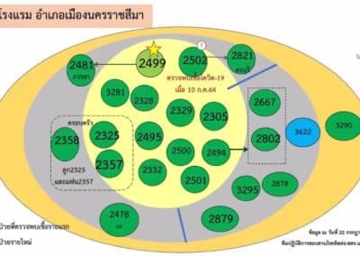นอกจากนี้ คณะกรรมการโรคติดต่อจังหวัดนครราชสีมา ยังจะต้องจับตาคลัสเตอร์ใหม่ที่ลามไม่หยุด จำนวน 9 คลัสเตอร์ ได้แก่ คลัสเตอร์ แคมป์ก่อสร้างถนนโค้ง อ.ปากช่อง พบผู้ติดเชื้อกว่า 30 ราย, คลัสเตอร์ สนามเปตอง อ.ด่านขุนทด พบผู้ติดเชื้อแล้ว 16 ราย , คลัสเตอร์ บ้านพัก ต.ในเมือง อ.เมืองนครราชสีมา เดินทางกลับมาจากพื้นที่เสี่ยง จ.อยุธยา พบผู้ติดเชื้อแล้ว 14 ราย ,คลัสเตอร์ ต.เมืองปราสาท อ.โนนสูง ครอบครัว เดินทางมาจากพื้นที่เสี่ยง บางแค กรุงเทพฯ พบผู้ติดเชื้อในครอบครัวและญาติ รวม 5 ราย , คลัสเตอร์ หมู่ 11 ต.หนองมะนาว อ.คง พบผู้ติดเชื้อแล้ว 5 ราย, คลัสเตอร์ วงพนันที่ ต.หนองสรวง อ.ขามทะเลสอ พบผู้ติดเชื้อแล้ว 22 ราย , คลัสเตอร์ โรงแรมโคราปุระ อ.เมืองนครราชสีมา พบผู้ติดเชื้อ 24 ราย , คลัสเตอร์ โรงงาน ผลิตชิ้นส่วน ต.ลาดบัวขาว อ.สีคิ้ว พบผู้ติดเชื้อแล้ว 11 ราย และคลัสเตอร์ ตลาดเทศบาลตำบลปากช่อง (ตลาดเช้า) อ.ปากช่อง พบผู้ติดเชื้อ 16 รายแล้ว
