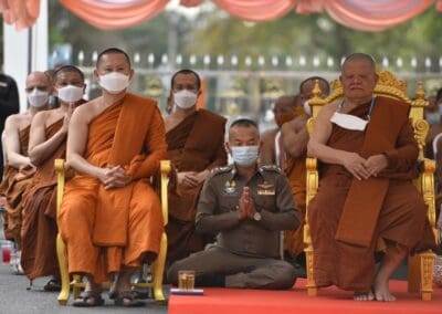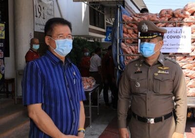 นครราชสีมา – วันนี้ (21พฤษภาคม 2564) ที่สถานีตำรวจภูธรเมืองนครราชสีมา นายวิเชียร จันทรโณทัย ผู้ว่าราชการจังหวัดนครราชสีมา พันตำรวจเอกธนัญชัย เพียรช่าง รองผู้บังคับการตำรวจภูธรจังหวัดนครราชสีมา ตรวจเยี่ยมการปฏิบัติงานของเจ้าหน้าที่ตำรวจภูธรเมืองนครราชสีมาในการให้บริการแก่ประชาชน พร้อมตรวจเยี่ยมมาตรการป้องกันการแพร่ระบาดของไวรัสโควิด-19 ภายในโรงพัก สำหรับประชาชนที่เดินทางมาติดต่อราชการ หลังจากพบว่า ผกก.สภ.ปักธงชัย ติดเชื้อโควิด-19 ขณะที่ สภ.เมืองนครราชสีมา ได้เพิ่มมาตรการในการคัดกรองประชาชนที่มาติดต่อราชการรวมทั้งเจ้าหน้าที่ตำรวจที่มาปฏิบัติงานเพื่อป้องกันการแพร่ระบาดของโรค