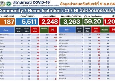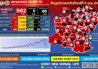 โคราชยังอ่วม ! ยอดผู้ป่วยโควิด-19 กลับมาพุ่งอีก 562 ราย ดับ 5 ราย พร้อมเฝ้าระวังคลัสเตอร์เดิม 5 คลัสเตอร์ใหญ่ ควบคุมการระบาด