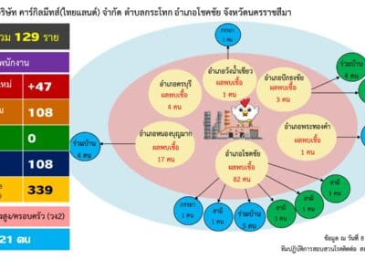 4.คลัสเตอร์ โรงงานแปรรูปไก่ ต.ท่าเยี่ยม อ.โชคชัย มีพนักงานติดเชื้อ 171 ราย และเชื้อกระจายไปยังครอบครัว และผู้สัมผัสเสี่ยงสูง อีก 10 ราย รวมมีผู้ติดเชื้อในคลัสเตอร์นี้แล้ว 181 ราย
