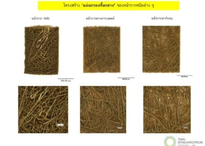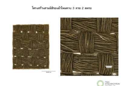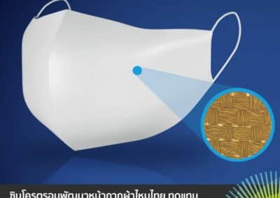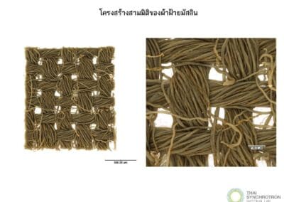งานวิจัยนี้เป็นการนำวิทยาศาสตร์ชั้นสูงมาพัฒนาและยกระดับสิ่งทอจากเส้นใยธรรมชาติที่เป็นวัสดุท้องถิ่นเพื่อพัฒนาเป็นหน้ากากทางการแพทย์ โดยการใช้เทคโนโลยีแสงซินโครตรอนมาใช้ในการวิเคราะห์โครงสร้างสามมิติ สมบัติทางวัสดุศาสตร์ และสมบัติทางเคมี อันเป็นปัจจัยสำคัญต่อประสิทธิภาพการกรอง เปรียบเทียบกับหน้ากากอนามัยทางการแพทย์แบบใช้แล้วทิ้ง และผ้าชนิดต่างๆ ที่มีเส้นใยและรูปแบบการทอแตกต่างกัน