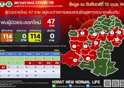 โคราชยอดติดเชื้อโควิดพุ่งทะลุเลข 3 หลักครั้งแรก ล่าสุดพบเพิ่ม 47 ราย รวมผู้ป่วยสะสม 114 รายแล้ว