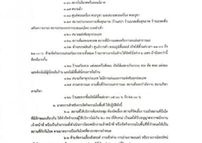 - ห้ามจัดงานเลี้ยงสังสรรค์,เข้าค่าย,ถ่ายภาพยนตร์ รายการทีวี,กิจกรรมทางศาสนา, การปฏิบัติธรรม, หรือพบปะญาติผู้ใหญ่ที่เกินกว่า 20 คน
