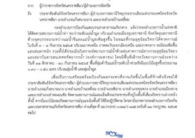 โคราช ออกหนังสือด่วนที่สุด แจ้ง 32 อำเภอ เตรียมพร้อมรับฝนถล่ม 5-9 ก.ย.นี้ ลดผลกระทบน้ำท่วม น้ำป่า น้ำล้นตลิ่ง ตรวจสอบการระบายน้ำ เฝ้าระวังจุดเสี่ยง 24 ชม.