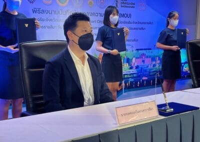 วันที่ 9 มิ.ย. 65 เวลา 09.00 น.นายชาตรี วงษ์วิบูลย์สิน รองนายกเทศมนตรีนครนครราชสีมา พร้อมด้วยสมาชิกสภาเทศบาล ร่วมพีธีลงนามบันทึกข้อตกลงความร่วมมือ (MOU) ด้านการพัฒนาเมืองอัจฉริยะจังหวัดนครราชสีมา (Korat Smart city) และพิธีเปิดเมืองอัจฉริยะจังหวัดนครราชสีมา ระหว่างจังหวัดนครราชสีมา กับ เครือข่ายการขับเคลื่อนการพัฒนาเมืองอัจฉริยะจังหวัดนครราชสีมา เพื่อพัฒนาคุณภาพชีวิตให้กับประชาชนทั้งด้านเศรษฐกิจและสังคม โดยนำเทคโนโลยีและนวัตกรรมมาใช้ในการพัฒนา และตอบโจทย์การพัฒนาประเทศไปสู่ Thiland 4.0 ณ ห้องประชุมมรกตอีสาน อาคารสำนักวิทยบริการและเทคโนโลยีสารสนเทศ ชั้น 5 โดยมี นายวิเชียร จันทรโณทัย ผู้ว่าราชการจังหวัดนครราชสีมา เป็นประธานในพิธีดังกล่าว