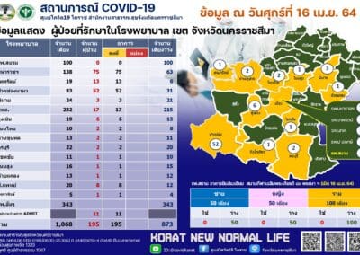 นครราชสีมา-วันนี้(16 เมษายน 2564) ที่อาคารยิมเนเซียม ชาติชายฮอล์ สนามกีฬาเฉลิมพระเกียรติ 80 พรรษา อ.เมืองนครราชสีมา จ.นครราชสีมา นายวิเชียร จันทรโณทัย ผู้ว่าราชการจังหวัดนครราชสีมา พร้อมด้วย นายแพทย์นรินทร์รัชต์ พิชญคามินทร์ นายแพทย์สาธารณสุขจังหวัด ,พลตรีชลิต บรรจุปรุ ผู้บัญชาการมณฑลทหารบกที่ 21 , นายแพทย์เกรียงไกร วัชรนุกูลเกียรติ ผู้อำนวยการ รพ.มหาราชนครราชสีมา และนายเกื้อ ชูศรี ผู้อำนวยการ สนง.การกีฬาแห่งประเทศไทย ภาค 3 ร่วมกันแถลงถึงความพร้อมการเปิดใช้ รพ.สนามเพื่อรองรับผู้ป่วยจากเชื้อไวรัสโควิด-19ในพื้นที่ จ.นครราชสีมา