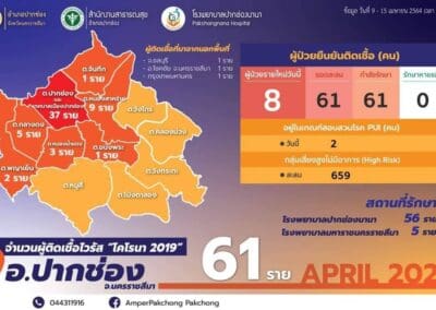 นายวิเชียร จันทรโณทัย ผู้ว่าราชการจังหวัดนครราชสีมา กล่าวว่า สำหรับ รพ.สนามแห่งแรกของจังหวัดนครราชสีมา สามารถรองรับผู้ป่วยได้อย่างน้อย 100 เตียง แบ่งเป็น ชาย 50 เตียง หญิง 50 เตียง นอกจากนี้ยังได้ เตรียม รพ.สนาม ไว้ภายในกองทัพภาคที่ 2 จำนวน 250 เตียง ในสนามลิปตพัลลภ จำนวน 100 เตียง และ รพ.มหาวิทยาลัยเทคโนโลยีสุรนารี อีก 200 เตียง ส่วนเจ้าหน้าที่แพทย์-พยาบาลในการดูแลผู้ป่วยใน รพ.สนาม จะใช้เจ้าหน้าที่ จาก รพ.มหาราชนครราชสีมา และ รพ.มหาวิทยาลัยเทคโนโลยีสุรนารี เป็นหลัก ทั้งนี้ ยอดผู้ป่วยระลอกใหม่ ล่าสุดวันนี้ มีผู้ป่วยแล้ว 195 ราย จึงต้องรีบดำเนินการจัดเตรียม รพ.สนามให้พร้อมรองรับผู้ป่วยโควิด-19ในพื้นที่จังหวัด