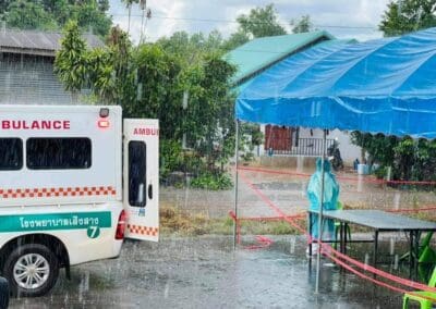 ล่าสุด เจ้าหน้าที่ฯ ต้องไปรับตัวปู่ของผู้ป่วยรายแรกของคลัสเตอร์นี้มารับการรักษาท่ามกลางมีพายุฝนที่ตกหนักอย่างต่อเนื่อง เจ้าหน้าที่ฯ ต้องอาศัยความอดทนทำงานสู้ทุกสถานการณ์ แม้จะลำบากก็ตาม แต่เพื่อช่วยเหลือให้ผู้ป่วยได้เข้ารับการรักษาอย่างทันท่วงที และยับยั้งไม่ให้เกิดการแพร่ระบาดของเชื้อไวรัสโควิด 19 ในพื้นที่อำเภอเสิงสางมากขึ้นไปกว่านี้ เจ้าหน้าที่และบุคลากรทางการแพทย์ทุกคนพร้อมจะปฏิบัติหน้าที่กันเต็มกำลัง