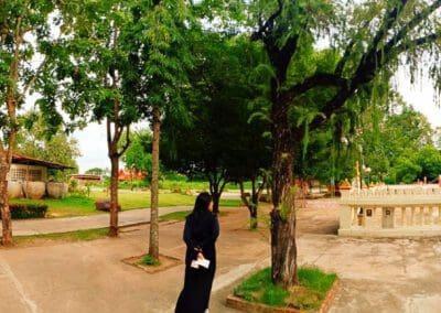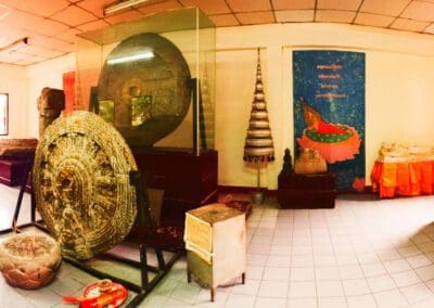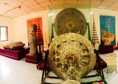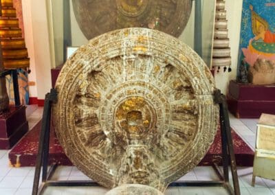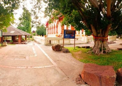 เพราะที่นี่มีการพบธรรมจักรโบราณที่เหมือนกับ เสมาธรรมจักรที่นครปฐมด้วย และไม่ไกลนักยังมี โบราณสถานที่เป็นเทวสถานของศาสนาพราหมณ์ คือ ปราสาทหินเก่าแก่สมัยพระเจ้าชัยวรมันที่ 7 ได้แก่ ปราสาทหินเมืองแขก ปราสาทหินโนนกู่
