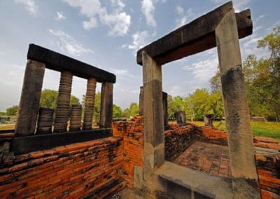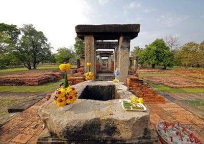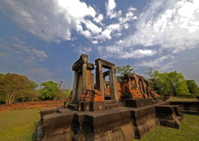 ปราสาทเมืองแขก ศาสนสถานของศาสนาฮินดู สร้างประมาณปลายพุทธศตววษที่ 15 – ต้นพุทธศตวรรษที่ 16 เป็นโบราณสถานร้าง มีขนาดค่อนข้างใหญ่ ก่อด้วยหินทรายและอิฐ แผนผังเป็นรูปสี่เหลี่ยมผืนผ้า หันหน้าไปทางทิศเหนือ สิ่งก่อสร้างสำคัญได้แก่ ปราสาทประธาน บรรณาลัย 2 หลัง ระเบียงคด ซุ้มประตูหรือโคปุระ กำแพงแก้ว สระน้ำ และปราสาทก่อด้วยอิฐขนาดเล็ก