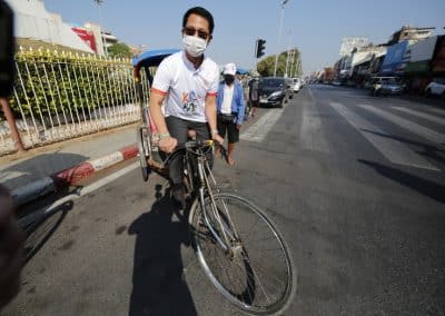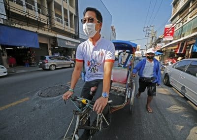 สจ.ก้องเกียรติ วงศ์นิยม เขต 1 โคราช ปั่นสามล้อ ย้อนการเดินทางของคนโคราช ที่จะใช้สามล้อ อันเป็นสัญลักษณ์ดั้งเดิม ผ่าน ถ.ชุมพล ไปกราบ เจ้าคณะจังหวัดที่วัดบึงพระอารามหลวงชั้นตรี เพื่อไหว้ขอพร หลวงพ่อโต อู่ทอง