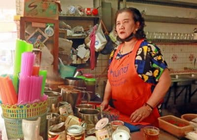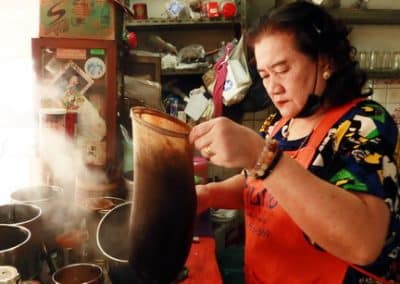 นางชูศรี ขจรเกียรติไพศาล (ฮวง) สะใภ้ ที่บอกว่า มารับช่วง หรือมรดกทางวัฒนธรรมการกิน ของคนโคราช ขยับตำนาน เล่า ที่มาของ ชื่อ เต๊กฮะ ว่า เป็นชื่อ อากง และ ส่งผ่านวิชาคั่วกาแฟ โปราณ จากรุ่นสู่รุ่น