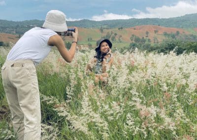 นครราชสีมา-ภายหลังรัฐบาลปลดล็อกระยะ 3 ส่งผลให้แหล่งท่องเที่ยวในพื้นที่ จ.นครราชสีมา หลายแห่งกลับมาคึกคักกันอีกครั้ง โดยเฉพาะที่ทุ่งดอกหญ้าระเริง พื้นที่บ้านวังขอน ตำบลระเริง อำเภอวังน้ำเขียว จังหวัดนครราชสีมา ถือเป็นจุดเช็คอินแห่งใหม่ของอำเภอวังน้ำเขียว จังหวัดนครราชสีมา ที่กำลังได้รับความนิยมจากนักท่องเที่ยวเป็นอย่างมาก เพราะตั้งอยู่บริเวณริมถนนสาย 3060 (วังน้ำเขียว-ปากช่อง) บ้านคลองทราย ตำบลวังน้ำเขียว อำเภอวังน้ำเขียว นครราชสีมา