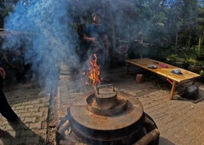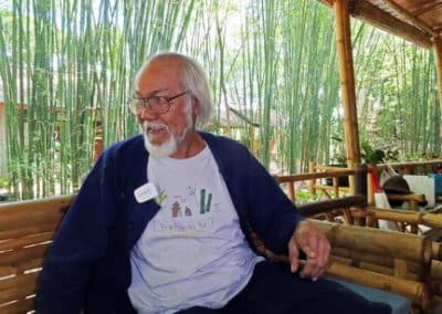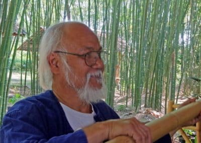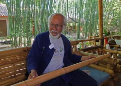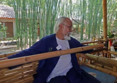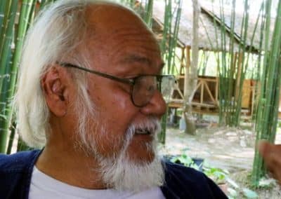 “ไผ่ เป็นพื้นเศรษฐกิจใช้ประโยชน์ได้ตั้งแต่โคนต้นถึงปลายยอด รวมทั้งใบด้วย เราสร้างมูลค่าเพิ่มด้วยการตัดเสร็จเอาไปแช่บอแรกซ์ป้องกันไม่ให้มอดกิน แล้วเอามาทำเป็นเก้าอี้ ที่ใส่เทียน กรอบรูป ไม้แขวนเสื้อ หลอดไผ่ หรือถ่านใบโอชาร์ อย่างน้อยลำหนึ่งขายได้สองร้อยบาท ถ้าตัดขายเฉยๆ ได้ยี่สิบบาท ถ้าใครจะปลูกไผ่เพื่อขายลำ ไปเป็นยามดีกว่า ผมเปิดโรงเรียนป่าไผ่ เพื่อต้องการให้สังคมเข้าใจไผ่อย่างจริงจัง ไม่ใช่ปลูกตามกระแส”