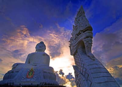 “พุทธอุทยาน นาคเกิด “พระพุทธมิ่งมงคลเอกนาคคีรี” เป็นพระพุทธรูปปางมารวิชัย ศิลปะร่วมสมัย ขนาด หน้าตัก 25.45 เมตร สูง 45 เมตร โครงสร้างคอนกรีตเสริมเหล็ก ประดับด้วยหินอ่อนหยกขาว สุริยะกันต จากพม่า น้ำหนักหินอ่อน 135 ตัน ประดิษฐสถาน ณ.พุทธอุทยาน ยอดเขานาคเกิด ต.กระรน อ.เมือง จ.ภูเก็ต แนคิดในการสร้าง พระพุทธรูปเป็นรูป สร้างขึ้นเพื่อระลึกถึงพระพุทธเจ้า และเคารพบูชาแทนพระองค์จริง ซึ่งได้ปรินิพพานไปนานแล้ว